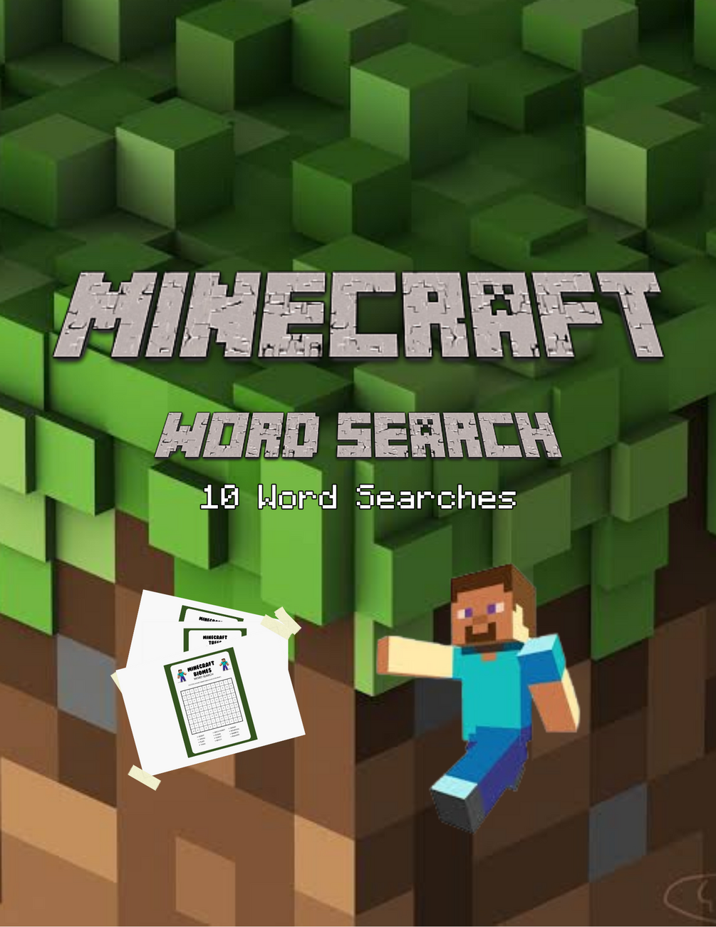 10 Different Categories: Each page has a word search about a different part of Minecraft, like animals, tools, and places.